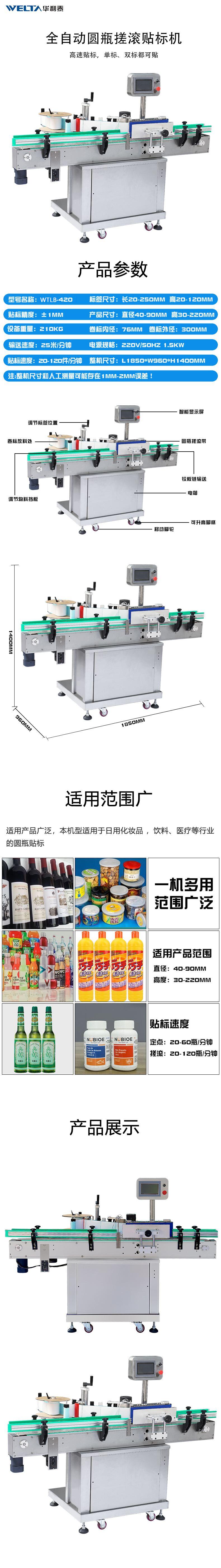 WTLB-420全自动圆瓶搓滚圆形圆罐卷筒标签不干胶贴标机