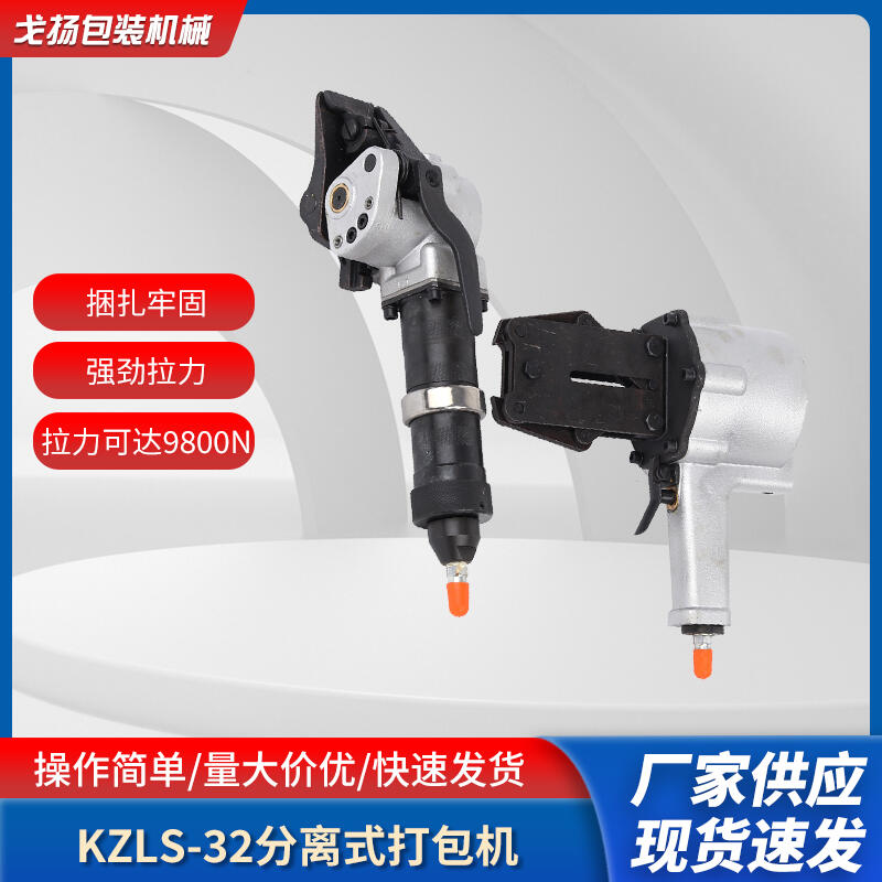 KZLS-32分离式气动打包机是由拉紧机和锁扣机配合使用(收紧、咬扣、折断)。适用于对钢材、管材、板材等物件的捆扎,方便快捷,束紧力强,是一款性价比较高的钢带捆扎设备。