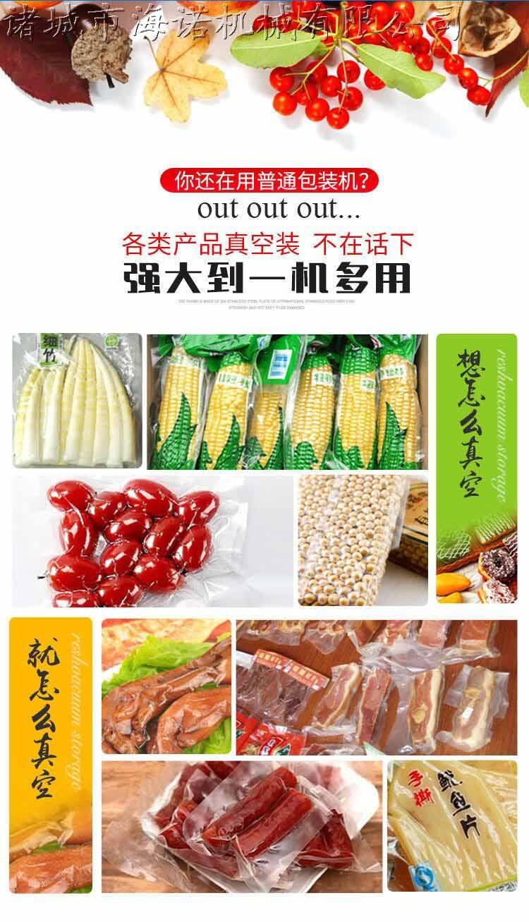 6、本机特别适用于酱菜、蔬菜、冷冻产品、水产品、鸡产品等包装。