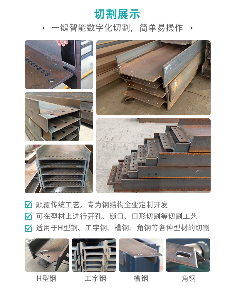 激光型钢切割机H型钢切断、切孔、刻字、划线、打标一机搞定