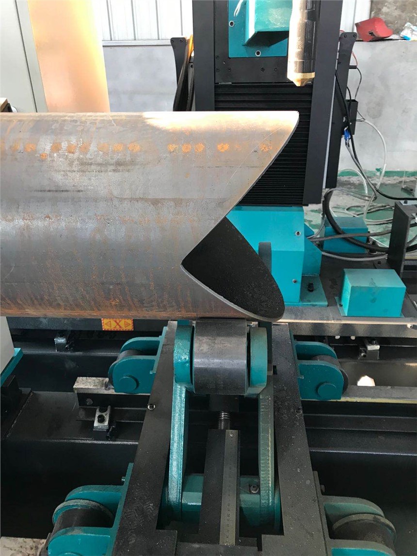 三轴工业型相贯线切割机,主要功能是在管壁上可以切割各种相贯线口型,例如:马鞍孔,方孔,圆孔等,也可在管子端部切割各种相贯线口型。