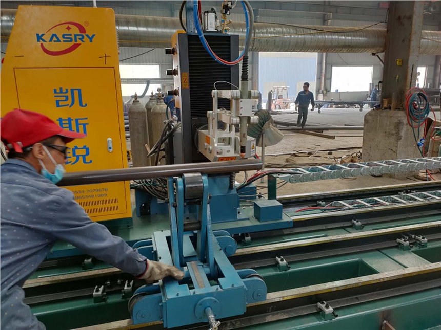 圆管相贯线切割机具有自行编制切割程序的能力,还可以借助计算机预先编制好切割程序,然后导入切割设备中再运行切割,两种方法都可以完成相贯线的切割,采用等离子切割,切割精度高,既保证外观光滑无割纹,又大大提高切割效率。此外,还可以根据图纸的要求进行圆管的坡口加工,和以前手工割管相比,降低了职工的劳动强度,提高了圆管下料的正确率。