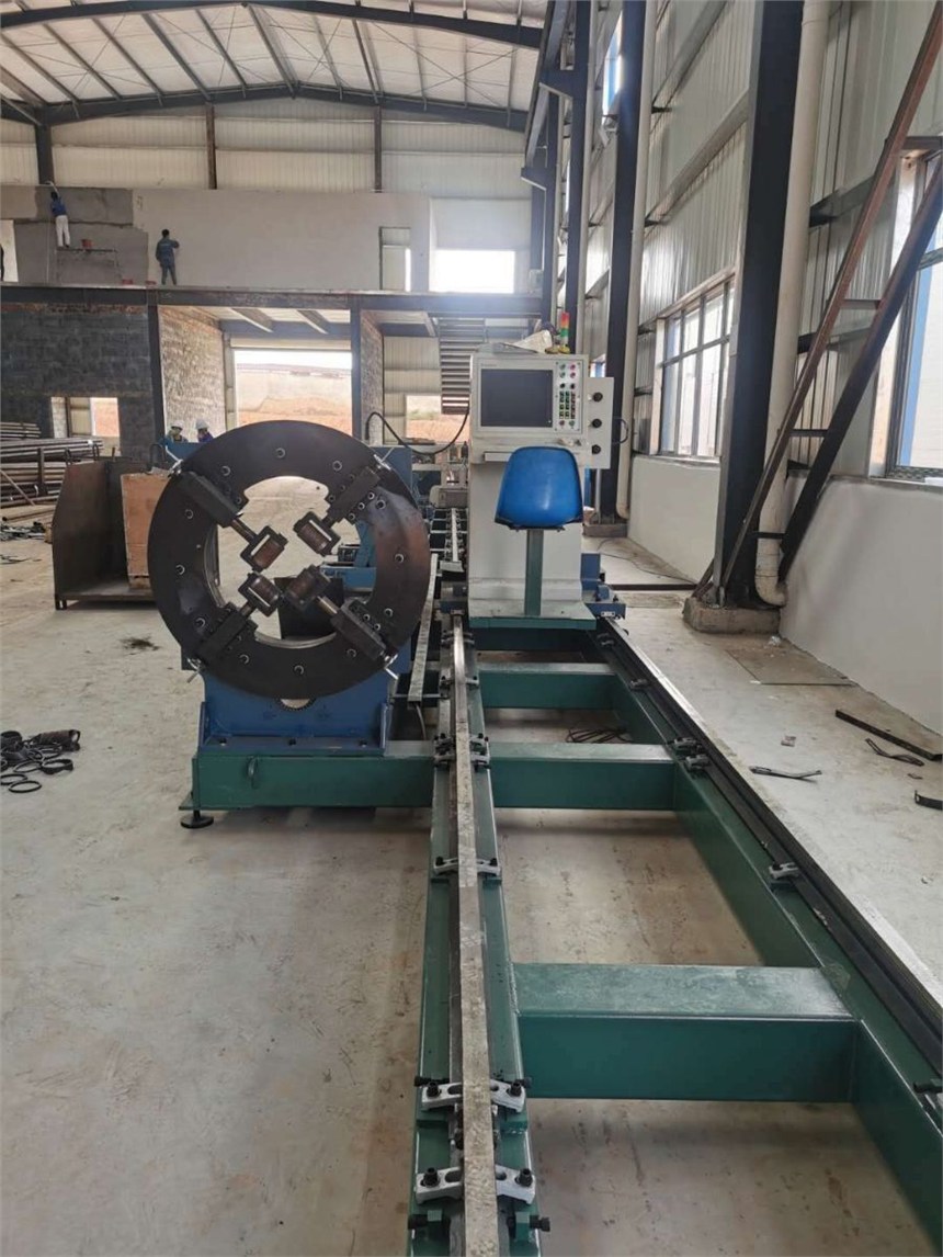 1. 下料:操作员在机器上启动程序,管子用吊装工具放置在管座上。