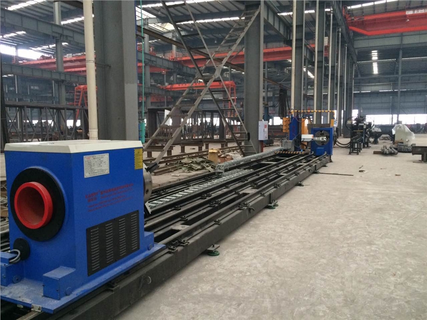凯斯锐所生产的相贯线切割机采用焊接式平台,管材由卡盘夹住旋转,在管材长度方向上配有几个可以移动托架,带有割炬的移动小车沿管长的方向水平移动,割炬受电脑工控机控制,从而实现相贯线的切割。