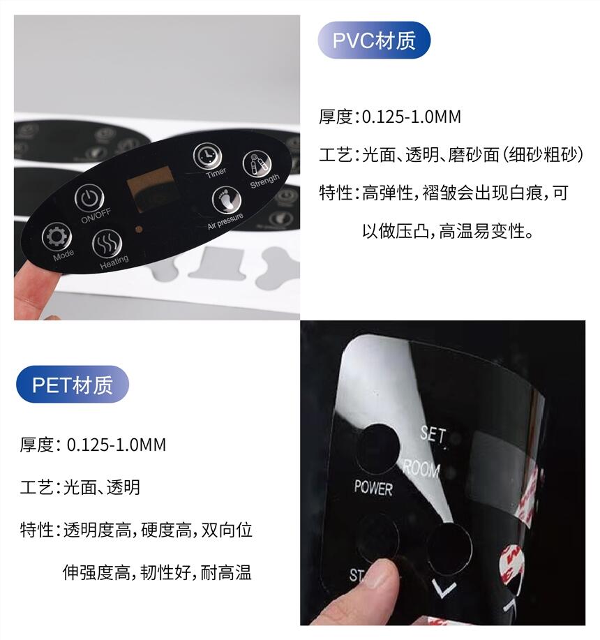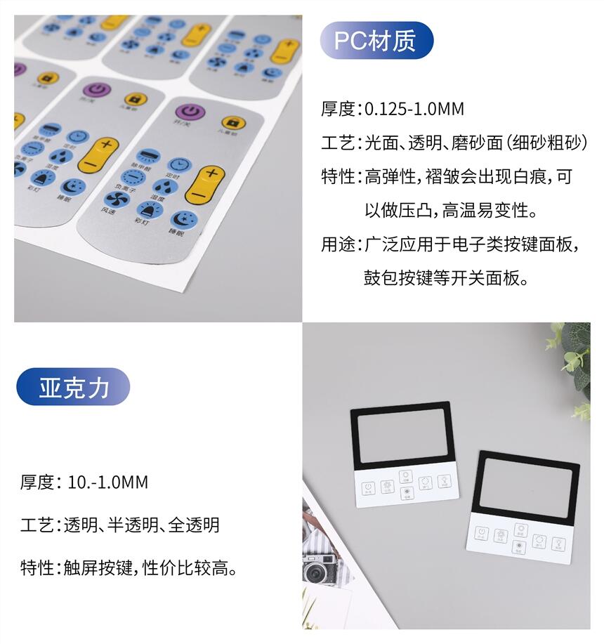 河北?PVC PET PC塑片 机器仪表控制面贴 按键薄膜开关面板厂家