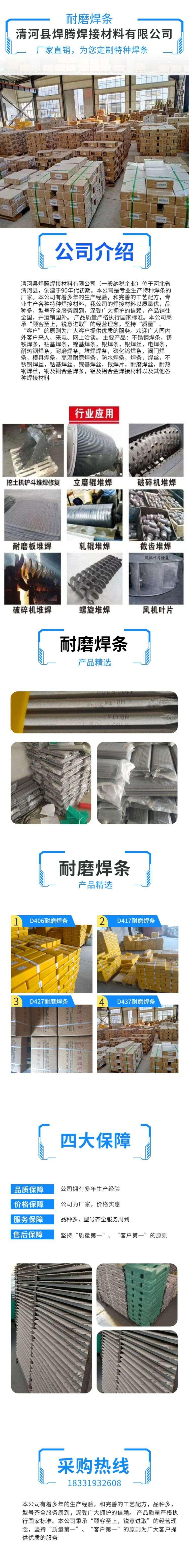 用途:适用于各种破碎机,高锰钢轨,斗、推土机等受冲击而易磨损部位的堆焊。
