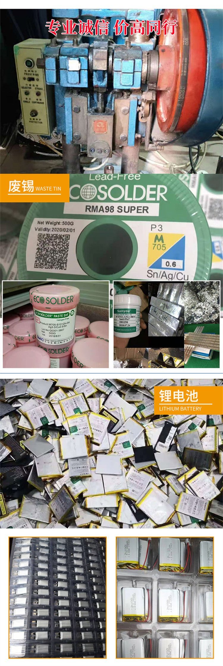 二、废旧锂电池材料类:回收钴酸锂正极片,回收纯钴双面正极片,回收加锰正极片,回收三元正极片,回收铝钴纸,回收负极片废料,钴粉,氧化亚钴,回收钴酸锂粉,钴泥,泥浆,保护板,IC,镍带,边角料,泡沫镍,回收镍氢正极片,镍氢负极片,含镍钴废料等所有锂电生产有关材料。