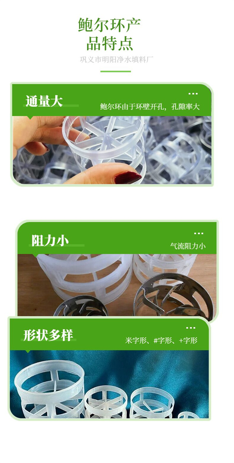 适用场景 | 塑料鲍尔环适用于各种分离、吸收、脱吸装置、常减压装置 | ||