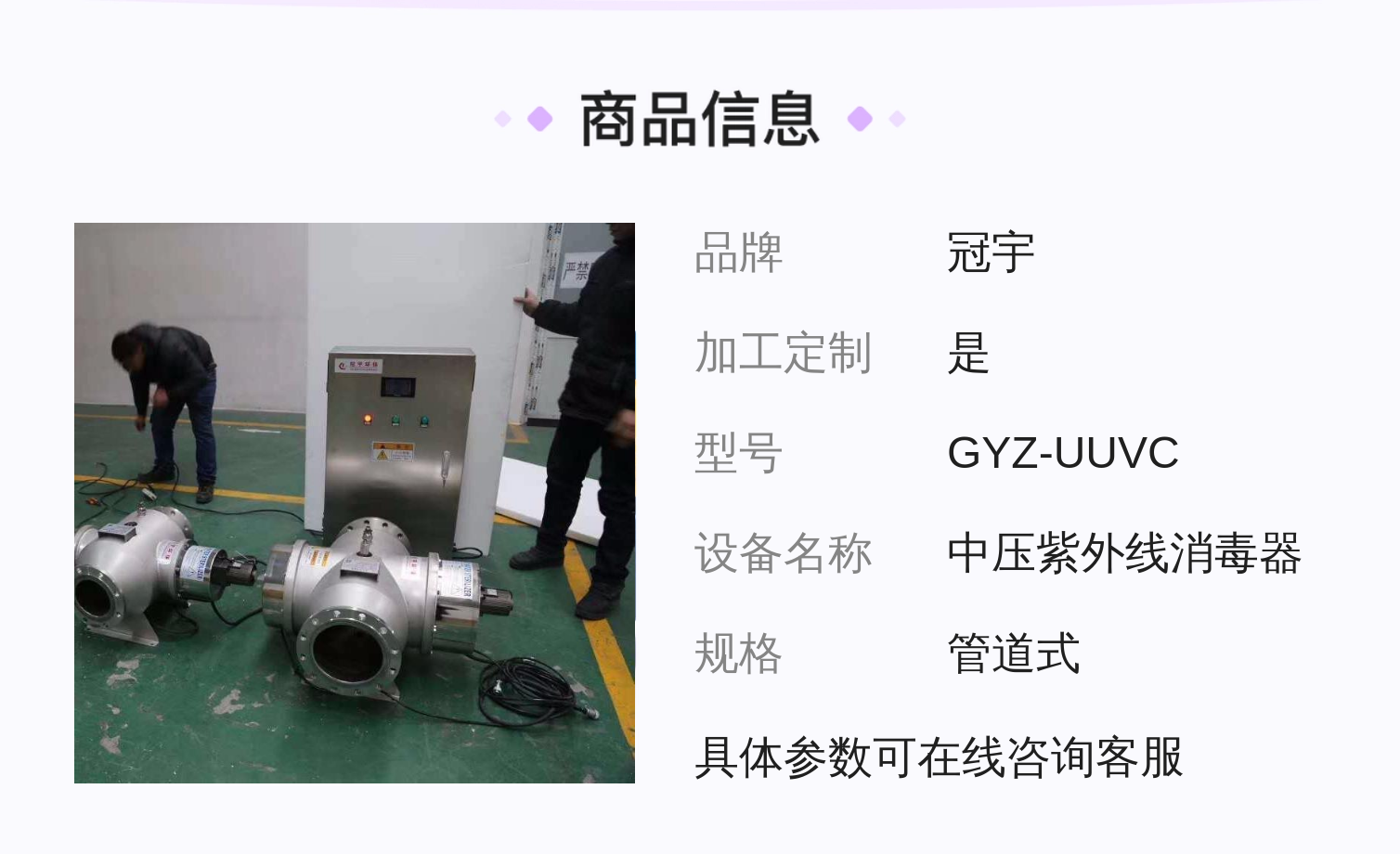 冠宇牌泳池水上乐园水族馆饮用水中压紫外线消毒器