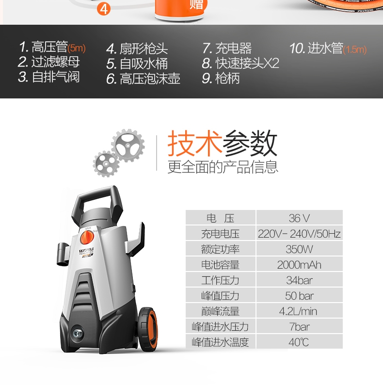 亿力自助型感应电机家用220v洗车店高压洗车机洗车器便携洗车泵