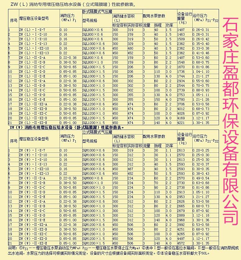 定压补水装置出厂前,我司已设定电接点压力表的上下限,上限为P2(水泵停止压力),下限为P1(水泵启动压力)。一般情况下,取P2=P1+(0.03-0.05Mpa)。当系统压力低于下限P1时,电接点压力表动作,启动水泵,将水箱中的水压入罐及采暖循环水系统或供水系统中,直至该系统压力达到上限压力P2,自动切断水泵电源,停止补水或供水。在采暖系统中,P1即为定压点,当系统压力小于P1时,补水泵启动向系统内补水,以确保系统压力定在P1,达到定压补水的目的,而且由于热水膨胀,使系统及气压罐中的压力上升,当压力达到安全阀开启压力P3时,安全阀开启,将水泄出,迅速降低系统及罐内压力,起到了膨胀水箱的作用,所以这一机组能同时做到定压、补水、膨胀水箱三效合一。一般情况下,取安全阀开启压力P3=P2+(0.02-0.04Mpa)。在供水系统中,随着用水量的不断消耗,管路中的压力会越来越小,当压力小于P1时,水泵再次启动,以上运转过程是由电接点压力表通过电器控制柜控制水泵起停而得以实现的。