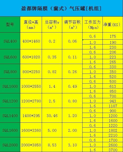 (2).隔膜式压力罐由钢罐体、罐体内丁基橡胶隔膜、罐体附件、罐体管道接口及支座构成,罐内由橡胶隔膜分隔为气室与水室,隔膜式压力罐须为原装进口、罐体内壁须含防腐涂层。罐橡胶隔膜采用高阻气丁基橡胶,满足水温变化:0—70℃。