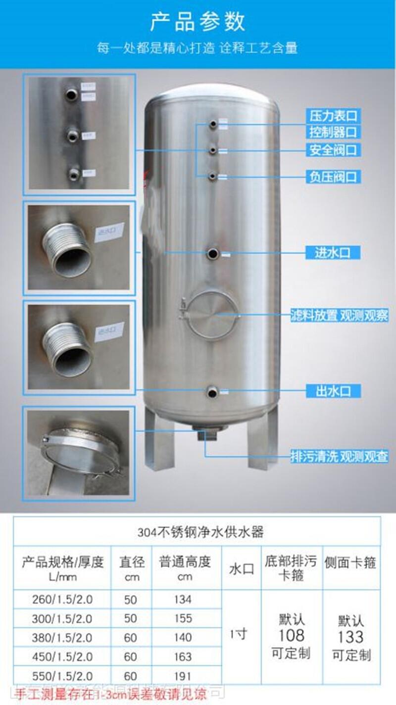 5.环保无污染。此成套设备中水箱、水泵、管路及阀门等涉水材料均采用食品级不锈钢材料,密封供水,不会产生二次污染,卫生环保。