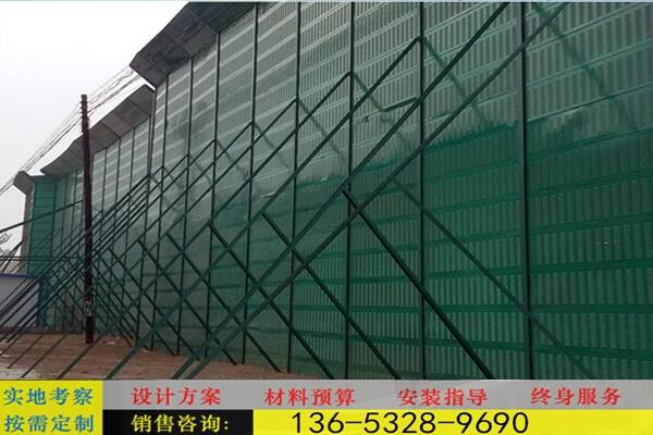工厂声屏障立柱采用H型钢:钢立柱规格:100*100*6*8 125*125*6*9.5 150*150*8*11 175*175*9*11等.立柱底部焊接底盘,底盘尺寸:250*250*10mm、300*300*10mm、350*350*10mm、400*400*10mm.厂区隔音墙是阻隔直达声的主要部件,屏体的材料是多样的,主要是混凝土类和金属类中比较好的吸音环保材料组成.