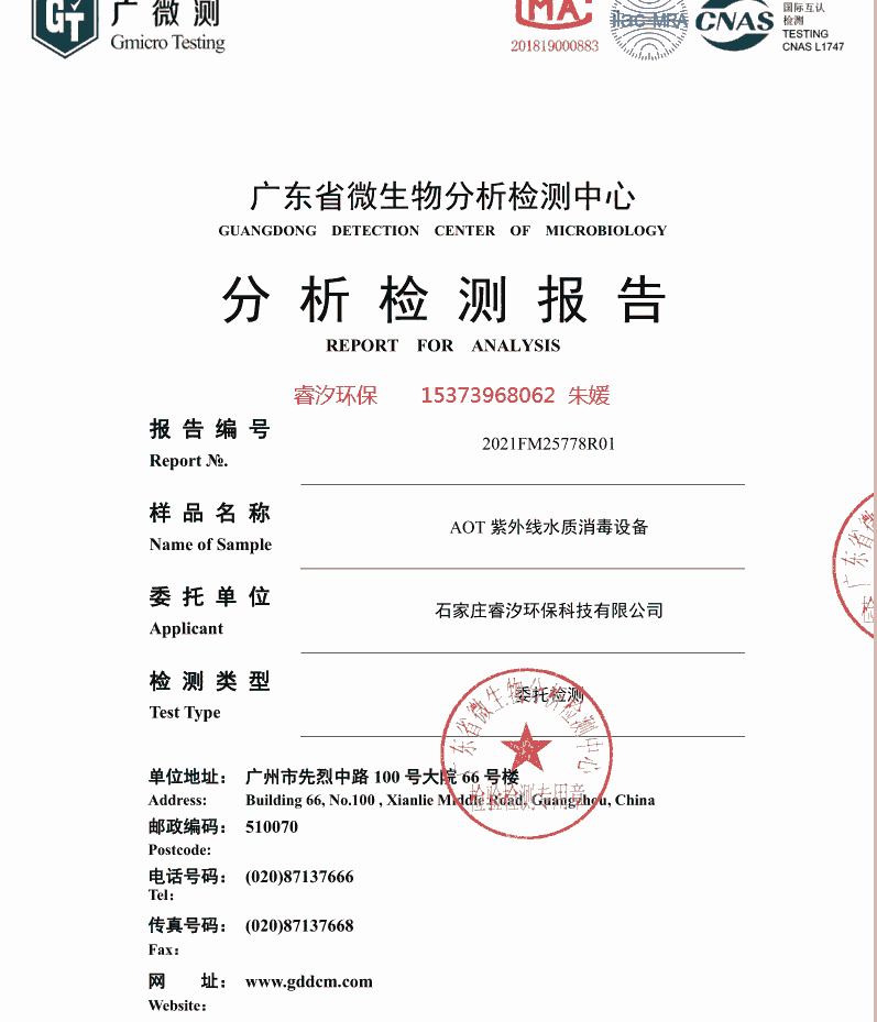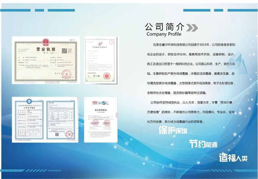 睿汐环保牌AOT利用特定光源激发二氧化钛光触媒涂层后产生的羟基自由基可以破坏细胞组织,这样快速的摧毁细胞组织之后,可以将水中的细菌、病毒、微生物、有机物等迅速分解成CO2和H2O,使微生物细胞失去复活、繁殖的能力,从而达到分解水中细菌、病毒、微生物、有机物等的目的。与普通低压紫外线而言,具有适应性强,效果显著,方便快捷等特别,深受需要对热水系统进行消毒的客户的认可和广泛使用
