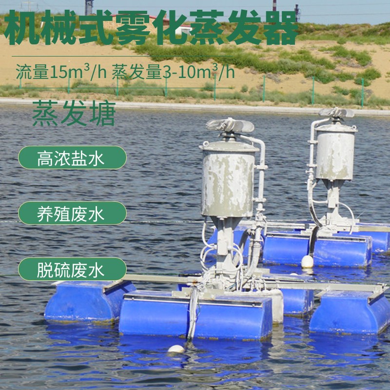 机械雾化蒸发技术优势;广泛意义上的零排放处理技术;运行管理灵活机动、可靠性高;水分蒸发对周围生态环境影响小;蒸发效率高,是自然蒸发效率的5~20倍;蒸发塘单元化,易于完成盐分等颗粒物的收集与处理;可适于常/低温蒸发,设备简单,易于安装、运行、管理;可显著减小蒸发塘占地面积,节约大笔资金投入。合理配置蒸发器所使用水面积是依赖自然蒸发塘面积的10~30%;投资少见效快。不需加热蒸发,吨水耗电4~5KWh,运行成本极低;为高效、节能、环保、可靠、经济的高盐水处理解决方案。机械雾化蒸发技术,机械雾化蒸发技术是一种通过工业化的专业机械雾化蒸发器(Enhanced Evaporator)利用蒸发塘将各种水雾化喷入大气,增加雾化水滴在大气中的比表面积和“悬浮时间”加速水的蒸发效果的技术。机械雾化蒸发器采用国内先进特有喷嘴,将水流雾化成极小的水滴,水滴直径可达100μm以下,大大增加水滴与空气接触的比表面积,加速水分蒸发大大减小蒸发塘占地;同时,喷嘴雾化独特工艺设计保证盐分、游滴等颗粒及大分子**物的集聚回落至蒸发塘饱和收集单元,便于结晶盐等固体颗粒的收集与采掘。机械雾化蒸发技术是一种“增强型“的自然、生态与环保蒸发技术,对周围环境无影响且能提高周围的水环境生态。同时,大规模进行的机械雾化蒸发甚至能间接局部改变当地的气候环境。