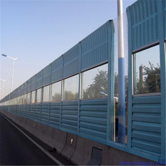 高架桥声屏障采用镀锌板表面冲百叶长圆孔,内部填充48k离心玻璃棉,背板的不冲孔的长方体盒子做吸音板。起撑重作用的立柱采用125*125H钢,H钢表面镀锌后提高了防腐能力,在气候恶略的地区保证二十年内不会有生锈腐蚀现象发生。