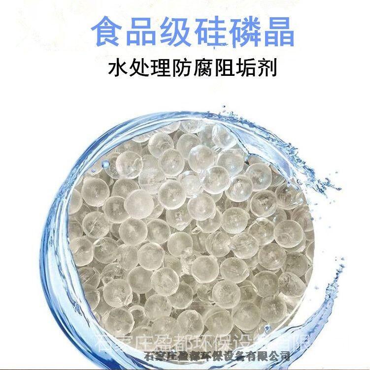“硅磷晶”是一种缓慢溶解的球状化学药剂。药剂由多种磷酸盐、硅酸盐经特殊加工制成。对于一个特定的用水系统,只要在主管线上安装一个合适容量的硅磷晶罐,罐中填满“硅磷晶”即可。当系统用水时, “硅磷晶”即进入用水系统,并开始起作用。