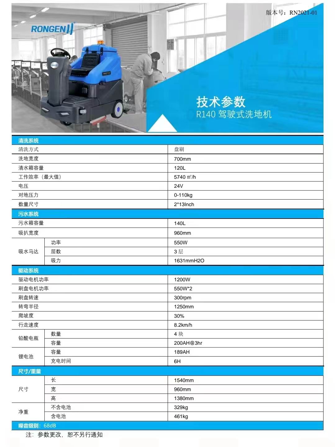 西安容恩驾驶式洗地车R140,厂区清洁地面清洗用全自动洗地机,双刷驾驶式全自动洗地机,一人一机,可替代6-8名工人工作。