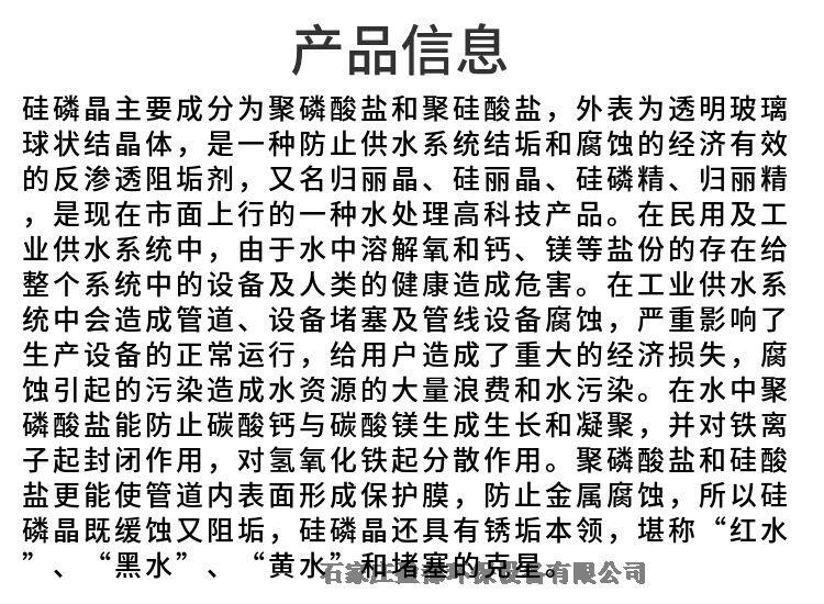 锅炉水络合晶阻垢剂 扬州食品级硅磷晶 采暖水阻垢归丽晶