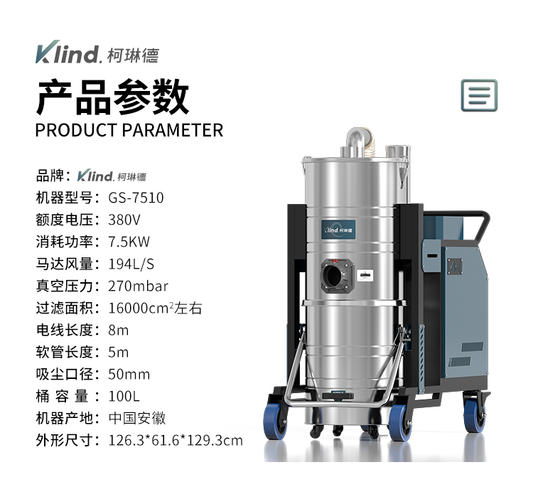 工厂矿区灰尘清洁用大功率工业吸尘器GS-7510,重工业吸尘器反吹清灰装置,24h可连续工作。