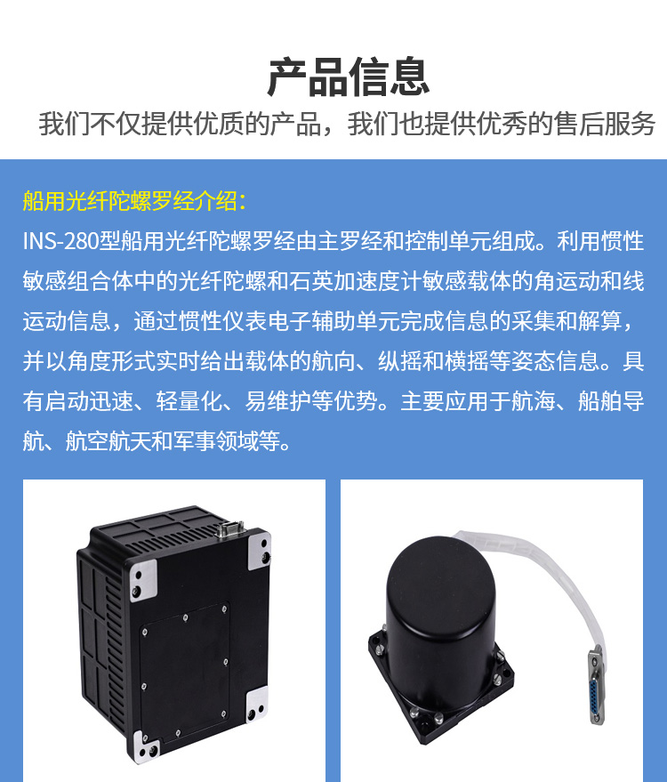 光纤陀螺罗经是面向民用船舶的新一代捷联式罗经系统,利用先进的光纤陀螺仪和捷联解算技术,自主测量舰船角运动,具备向外界连续提供载体的航向、纵摇、横摇等信息的能力,为船舶海上航行提供基础信息保障。
