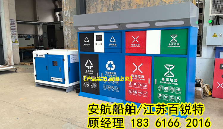 每套系统配备4个分类垃圾筒,分别存放有害垃圾、可回收物、厨余垃圾和其他垃圾,每个垃圾筒容量为240升。