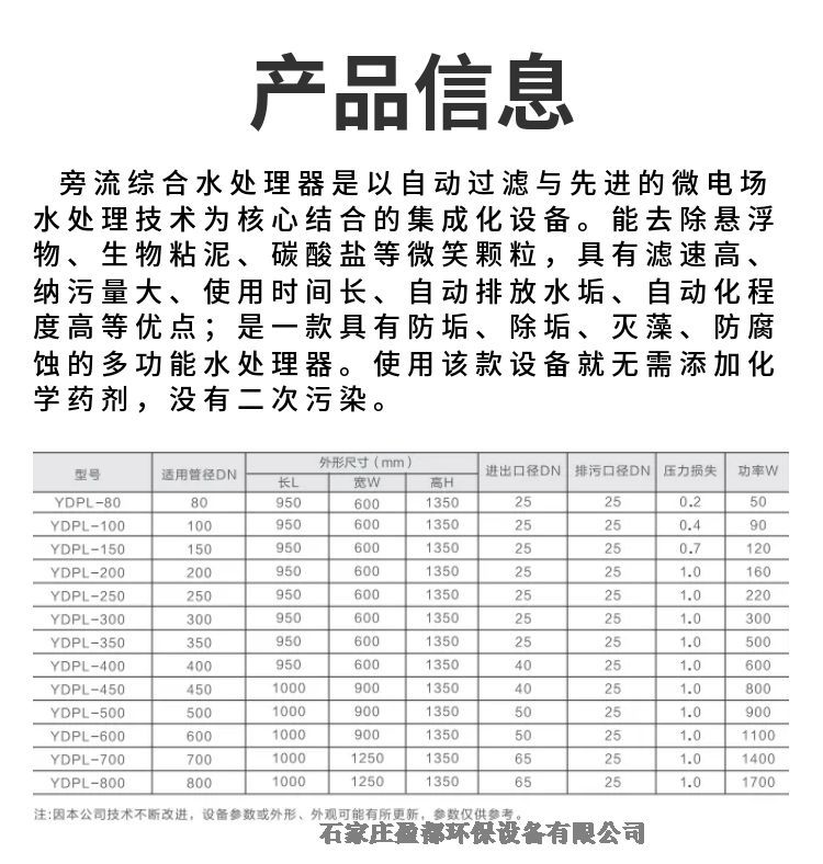 商场循环水系统旁流水处理器 冷冻水旁流水处理器松原