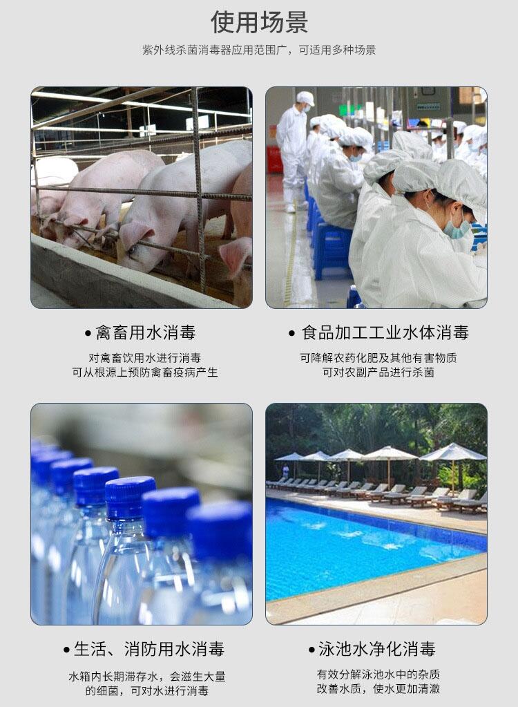 3.紫外线消毒器无二次污染: 紫外线杀菌不使用任何化学药剂,完全不会对水体和周围环境产生二次污染。不改变水中任何成分。