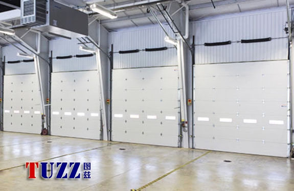 图兹工业提升门采用4公分或5公分双面彩钢板表面进行压花处理,美观大气,中间是高密度的聚氨酯发泡物(密度48KG/M3),有很好的隔音、保温、防尘、防盗防寒、承力、颜色齐全、坚固美观、运行平稳、安装方便、不占用下部空间等优点。图兹提升门的生产标准是按照欧标的,欧标的分节式提升门,有2个大的特征:一是防夹手的门板,二是内外门板是的不锈钢是不连接的,具有隔热保温性能。