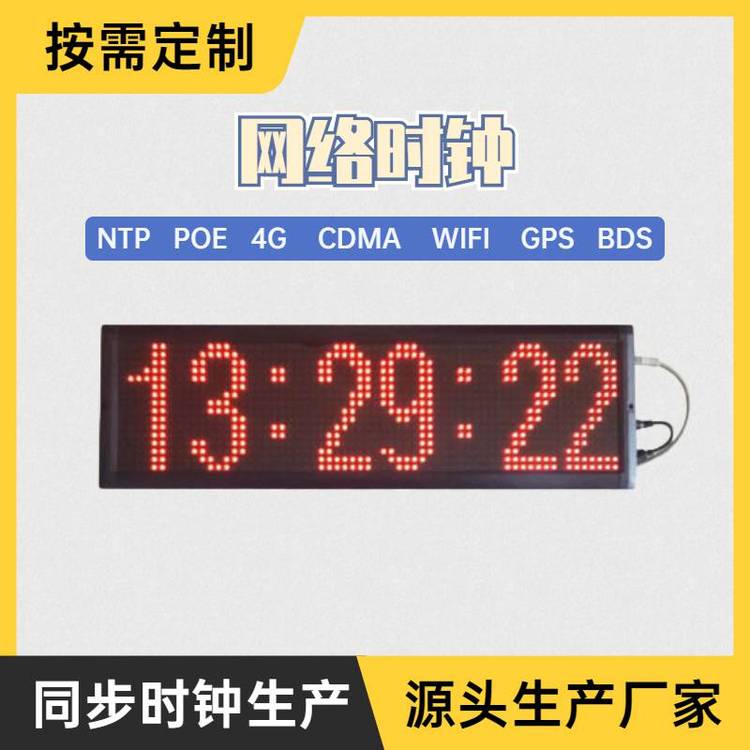 1、基于以太网(NTP)授时的电子钟,可获取NTP时间服务器时间,并以TCP/IP模式同步多个电子时钟,同步各个终端时间。