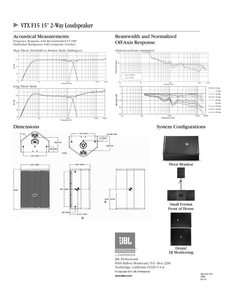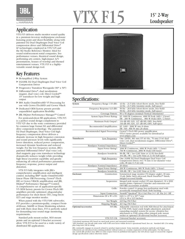 JBL VTX F15 15英寸2分频多用途扬声器