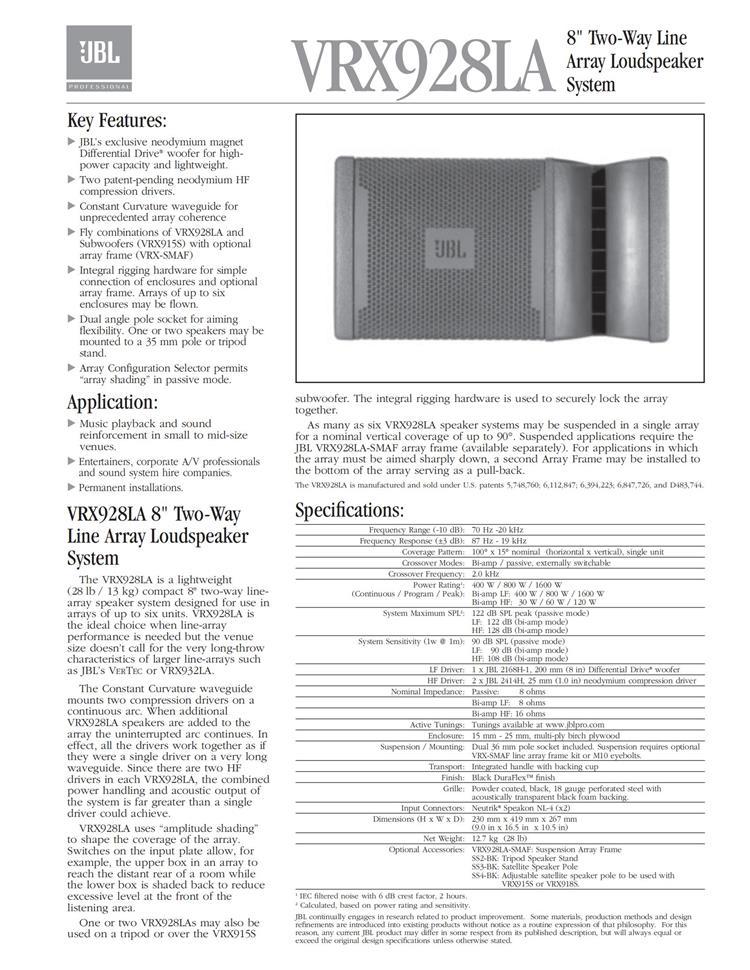 频率响应( 3 dB) | 70 Hz - 20 kHz | ||