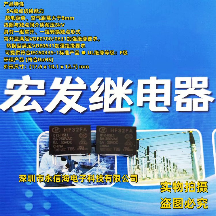 宏发HF32FA/012-HSL1直流电压12V 5A 电磁功率继电器面议 品牌 | 宏发 | ||