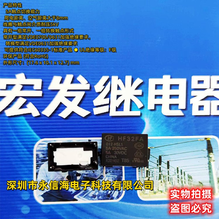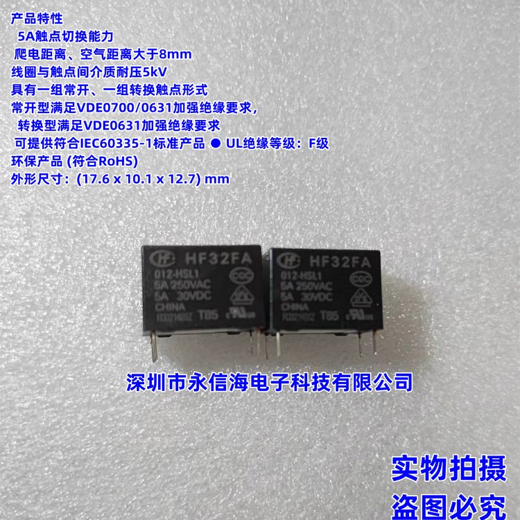 全新原装宏发HF32FA 012-HSL1 一组敞开5A 250VAC 12VDC直汉线圈电压电磁功率继电器