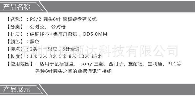 MINI DIN6P线纯铜PS/2延长线鼠标键盘6针MD6芯加长线PS2公对公母 品牌 | 连硕达 | ||