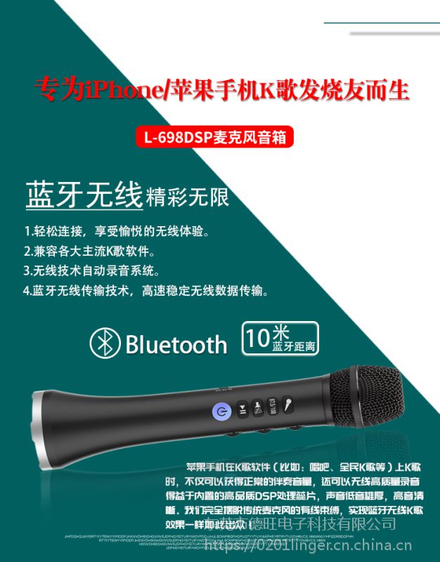 20w超大功率k歌神器l-698dsp横空出世,支持苹果蓝牙下录歌,无需再插录音线;伴奏音质清晰,无失真无断续;独有ktv音效模式,高度还原人声!支持车载k歌;支持一键消原唱;特有的agc电路设计配合高灵敏度动圈麦芯确保您的歌唱效果!当红明星代言,高档礼盒包装,赠礼佳品,欢迎品鉴.