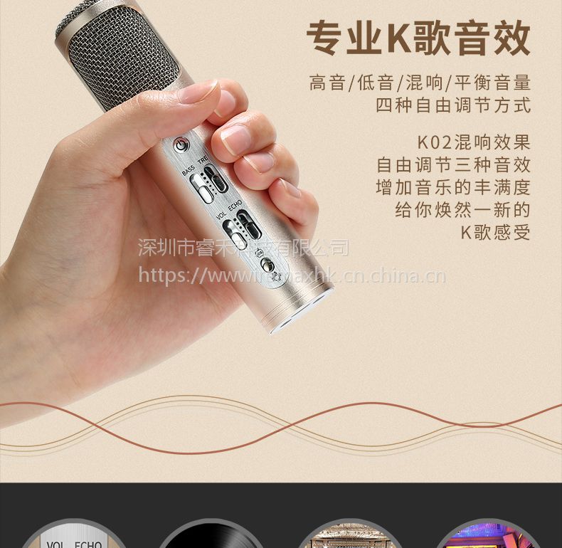 remax/睿量 k02降噪手机通用麦克风 全名k歌主播话筒苹果oppo唱歌