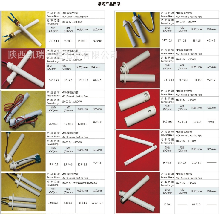 加热管,电加热管生产厂家,发热管生产商凯瑞宏星陶瓷加热管常见规格3