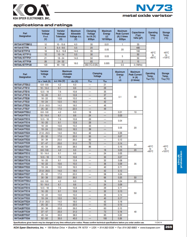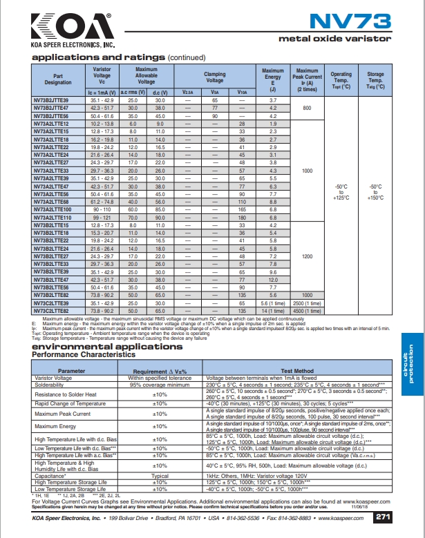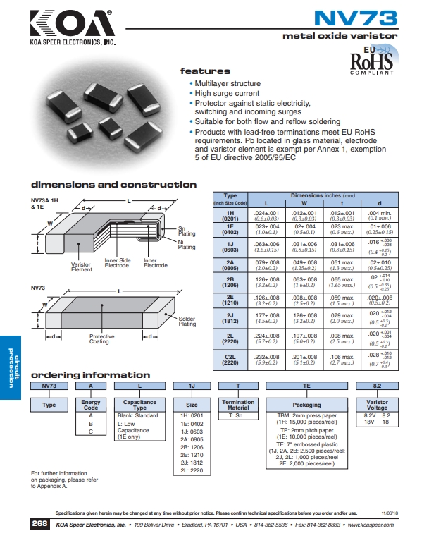 NV73 1H/1E 层叠型金属氧化物压敏电阻器