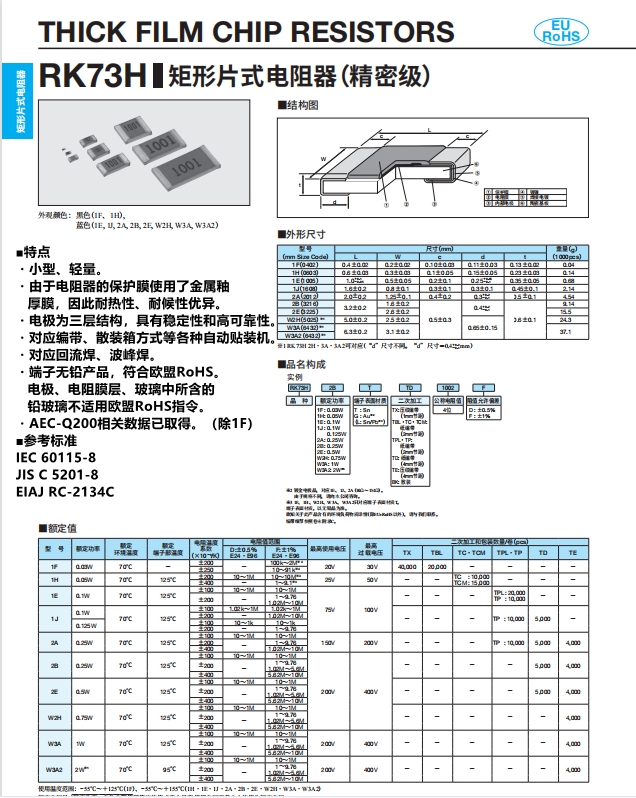 1206 2Ω 0.25W,1/4W -1%~1% |