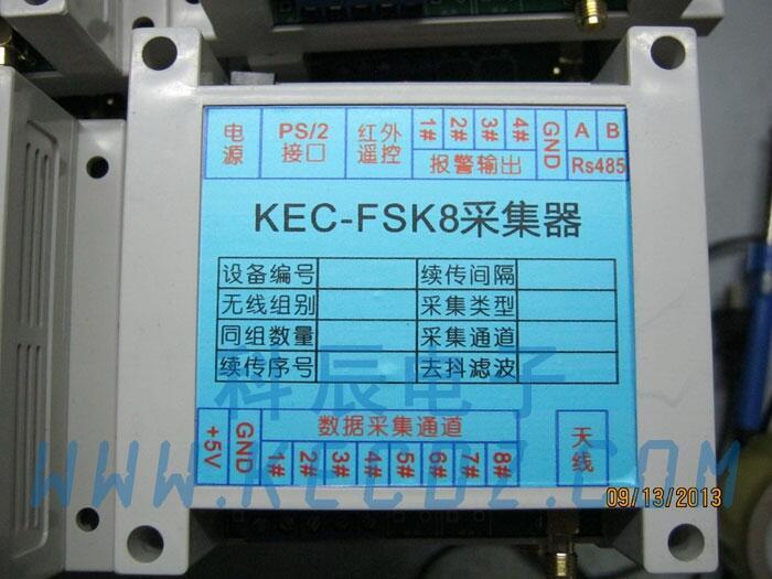 KEC-FSK8采集器是一款用在自动生产线上,对产线(机位、工位)的生产状态或产量进行检测统计的设备,并以无线方式实时的将采集数据传输到服务器。KEC-FSK8采集器一般用作JIT生产管理系统或品质管理系统的底层检测设备。KEC-FSK8采集器完整版包含1路无线通讯通道, 8路采集通道,4路报警输出,1个485通讯端口,1个红外遥控器接收端口,1个PS/S端口。