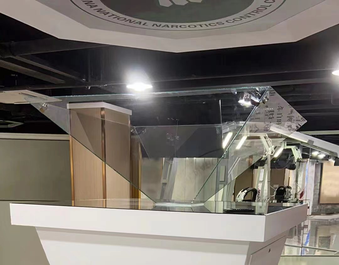 全息锥形玻璃展示柜 全息锥形玻璃展示柜是一种非常特殊的展示柜,它以独特的技术原理,可以将锥形的玻璃变成圆形。这种锥形屏和全息玻璃有着非常相似的光学特性,锥形屏可以使全息图像投射在锥形屏上,然后再将其应用到玻璃柜中。