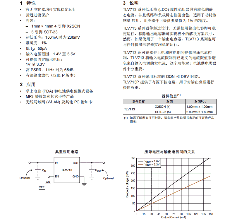 TLV71310PDQNR 具有主动输出放电和使能功能的 150mA、低压降无电容稳压器