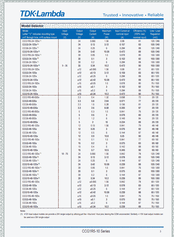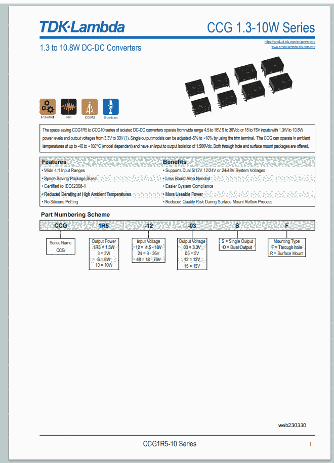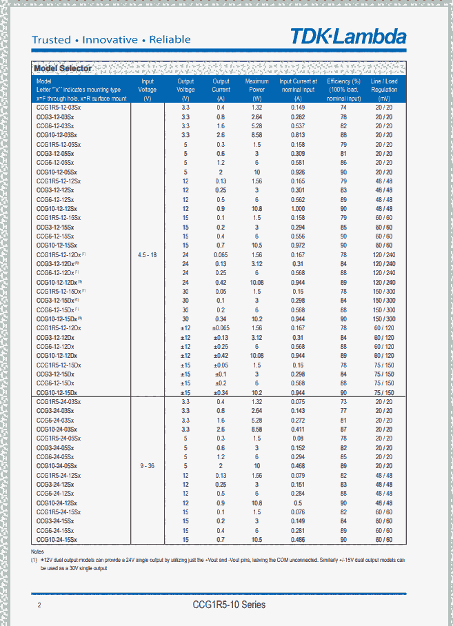 TDK-Lambda转换器|DC-DC转换器|TDK-Lambda CCG系列DC-DC转换器产品规格