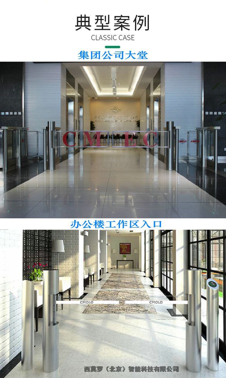 西莫罗圆柱摆闸物流门主要用于办公楼、膝拗钱、学校、景区、工厂出入口等场景。