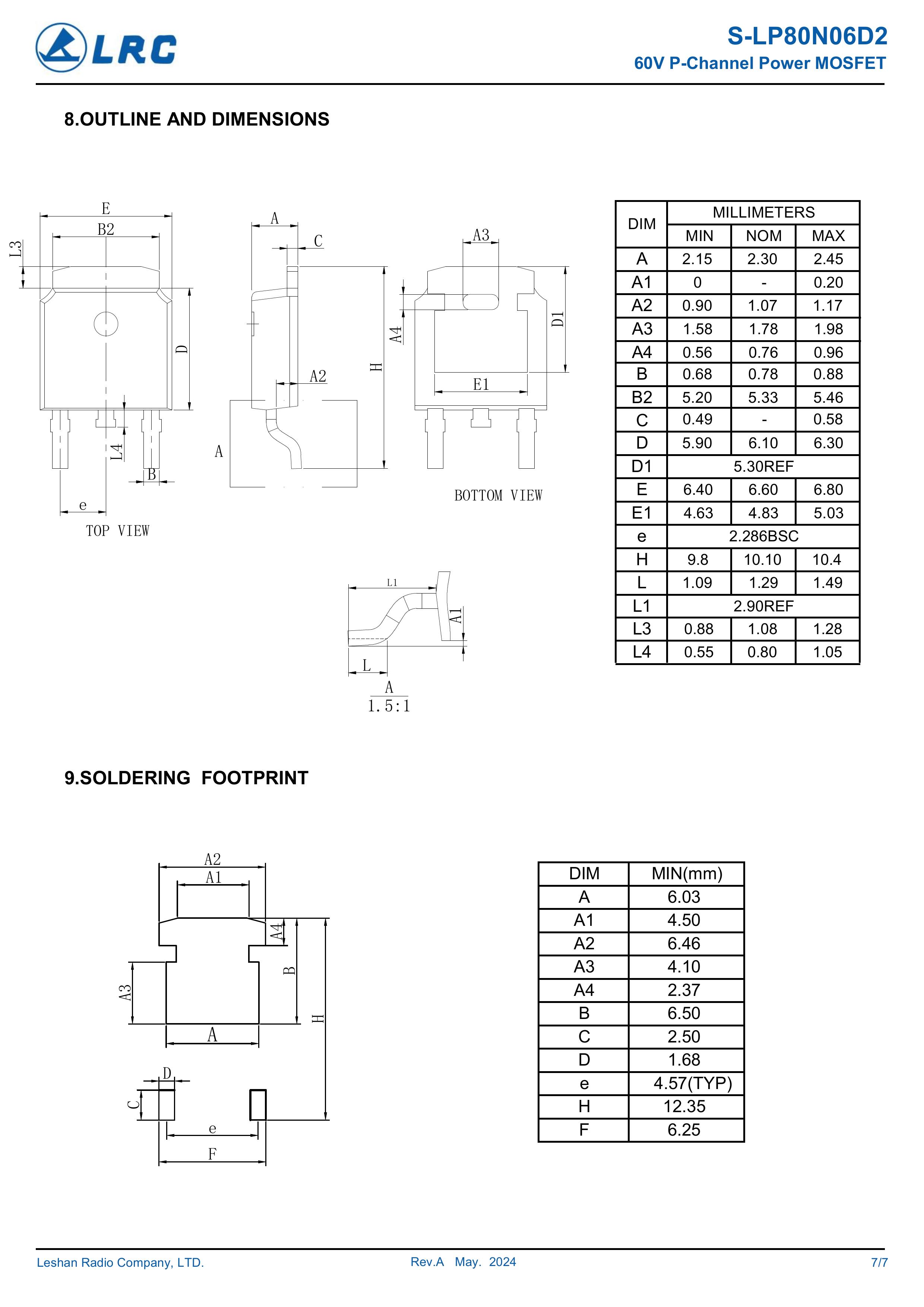 LRC/乐山无线电 S-LP80N06D2 全新原厂原装中低压高频功率控制电子开关管,车规级P型沟道场效应管-60V、-80A、5.5mΩ、P-Channel、贴片式中低压MOSFET:S-LP80N06D2/P80N06D2。Vds电压:-60V;Id电流:-80A;Rds(on)内阻:5.5mΩ;封装方式:TO-252-2L;最小包装数量:2500pcs/盘-编带。