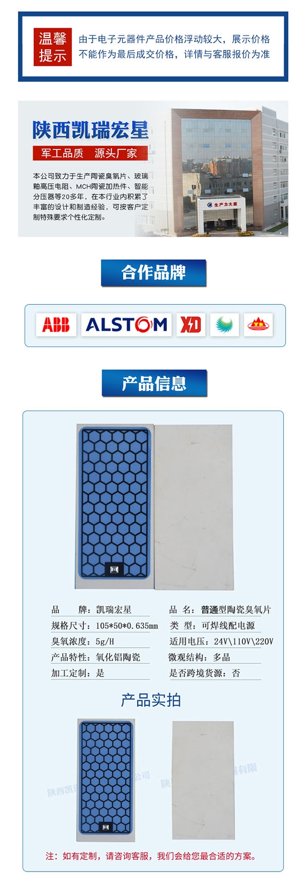 陕西凯瑞宏星电器,专业臭氧技术30年,凯瑞宏星生产的陶瓷臭氧片采用的浆料和陶瓷基板均为进口,品质高,寿命长!