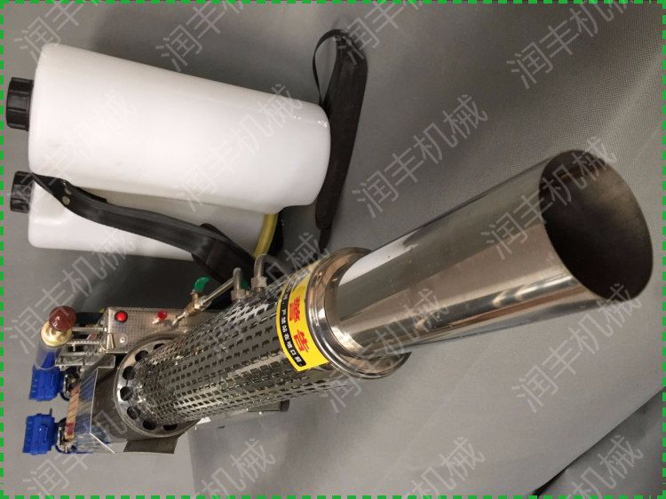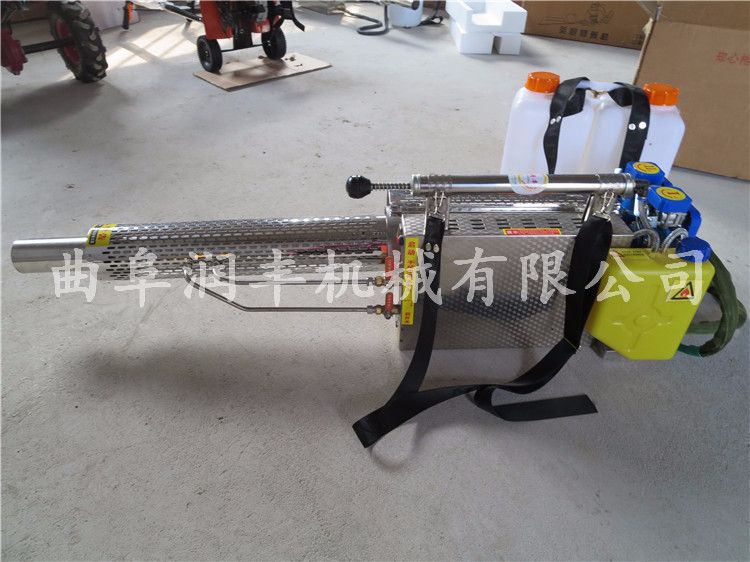 配比方法:先将扩散剂与柴油按1:15的比例进行勾兑(柴油用量占药箱总容量的10-20%),烟雾的浓度按加水量与柴油用量比例进行调节,加入10%药箱容量的农药,加入70-80%药箱容量的水,调和均匀后使用。四川新款弥雾机|四川喷雾弥雾机型号(必看)四川新款弥雾机|四川喷雾弥雾机型号(必看) 烟雾水雾两用弥雾机,机器药箱加入烟雾助剂(或柴油)喷出来的烟雾,加入烟雾剂越多烟雾量越大,烟雾打药快,扩散面积广!不加入烟雾剂直接使用兑好的药液打药,喷出来的水雾。水雾会受到温度和湿度的影响,水雾最适宜的打药时间是早晨和傍晚。温度越低,湿度越大,水雾的雾化效果就越好!阴云天气及日出前后打药水雾的雾化效果最佳!