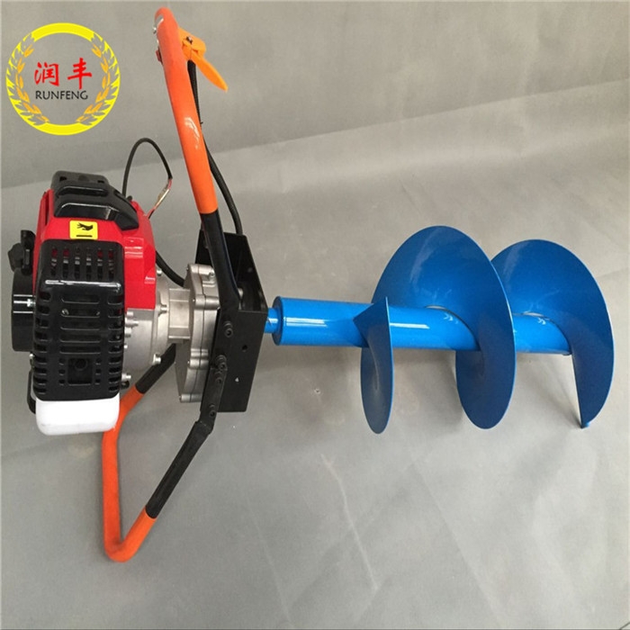 冰钻使用特点:1.该冰钻由小型通用汽油机,超越离合器,高减速传动箱及特殊设计的钻具组成.适合在土地,冻土,冰层上打孔.广泛用于园林,种植,植树,物探,道路建设等领域.?2.变速器齿轮采用纯紫铜制作大大提高了扭矩力增强了耐磨性。3.钻杆采用双刀片焊接加强了挖坑效果,出土率达到90%。配备定心钻头。?4.钻头采用锰钢合成更加的坚硬。对硬土质,粘土,冻土等都能对它很有效的实施工作,并能达到佳工作要求。钓鱼爱好者爱的钻眼钓鱼设备冰上钓鱼好帮手。?5.该地钻可根据树种,选配多种规格的钻头,以满足用户需要。使用地钻的效率是人工的数十倍,操作每小时不低于80个坑,按一天工作8小时计算,一天可以挖640个坑,是人工的30多倍。?6.具有体积小、重量轻、操作方便、维护简单、耗油省、噪音低、易启动、成孔效率高、运行费用低、价格便宜等特点,该地钻设计新颖、灵活、合理,性能稳定,作业效果好、效率高,深受广大用户欢迎。?7.地钻能够让人们从繁重的体力劳动解放出来,广泛应用于植树造林,栽种果林、篱笆、及秋季给果树施肥等。该地钻动力强劲有力,外形美观,操作舒适,劳动强度低,适合各种地形,效率高,便于携带及野外田地作业。?8.这款地钻既适合单人操作,又可双人操作,经济实用 公司方:山东省曲阜市润丰机械公司